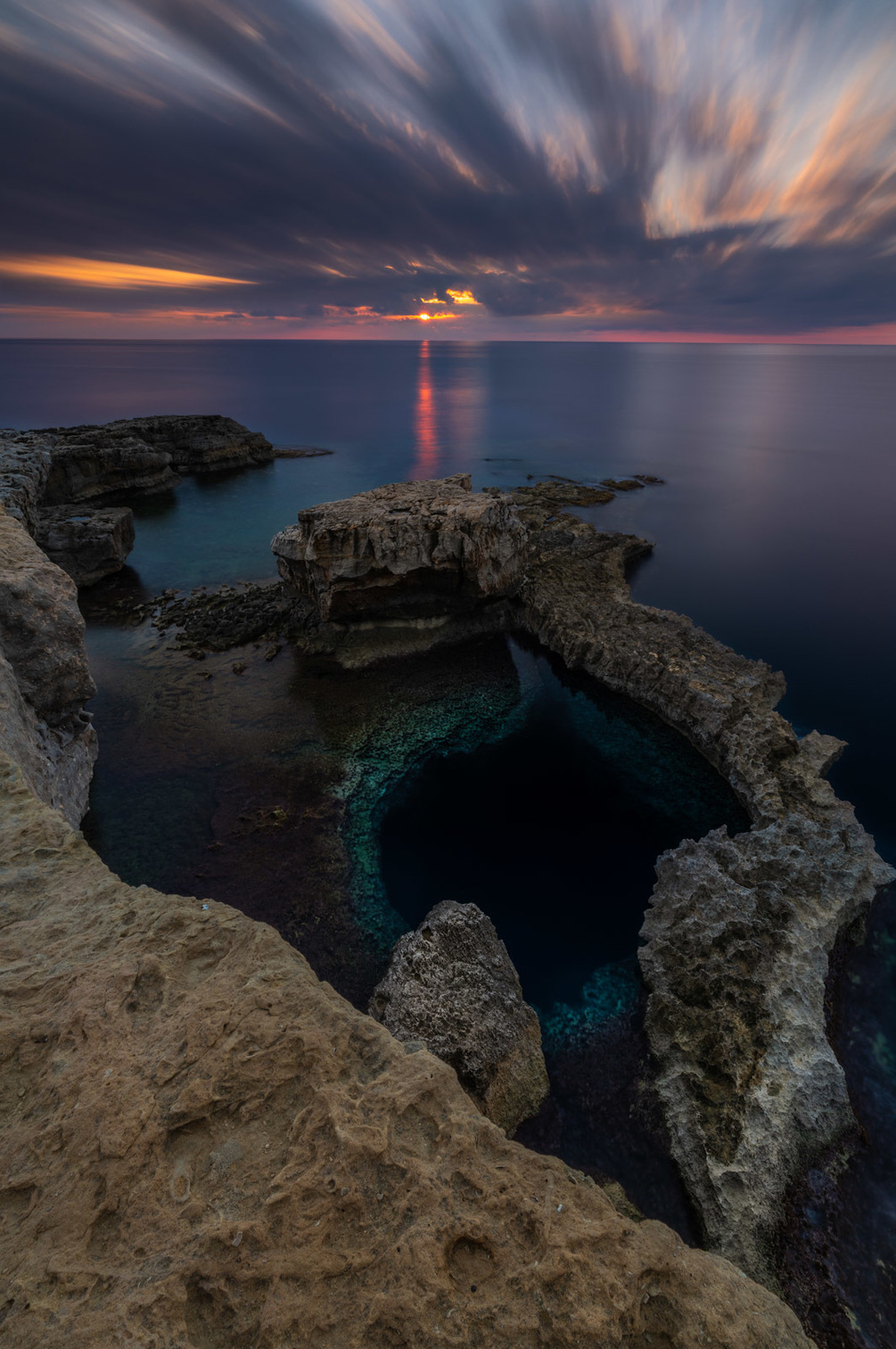 The only blue hole in the Maltese islands, during an amazing sunset.