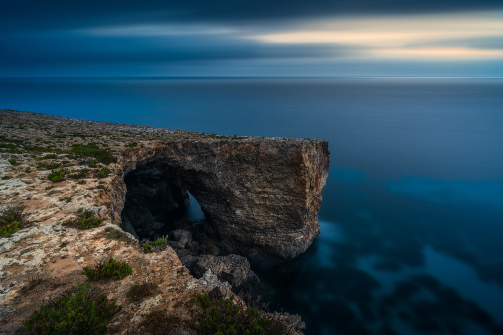 A long exposure shot of the most northernly natural arch in Malta.